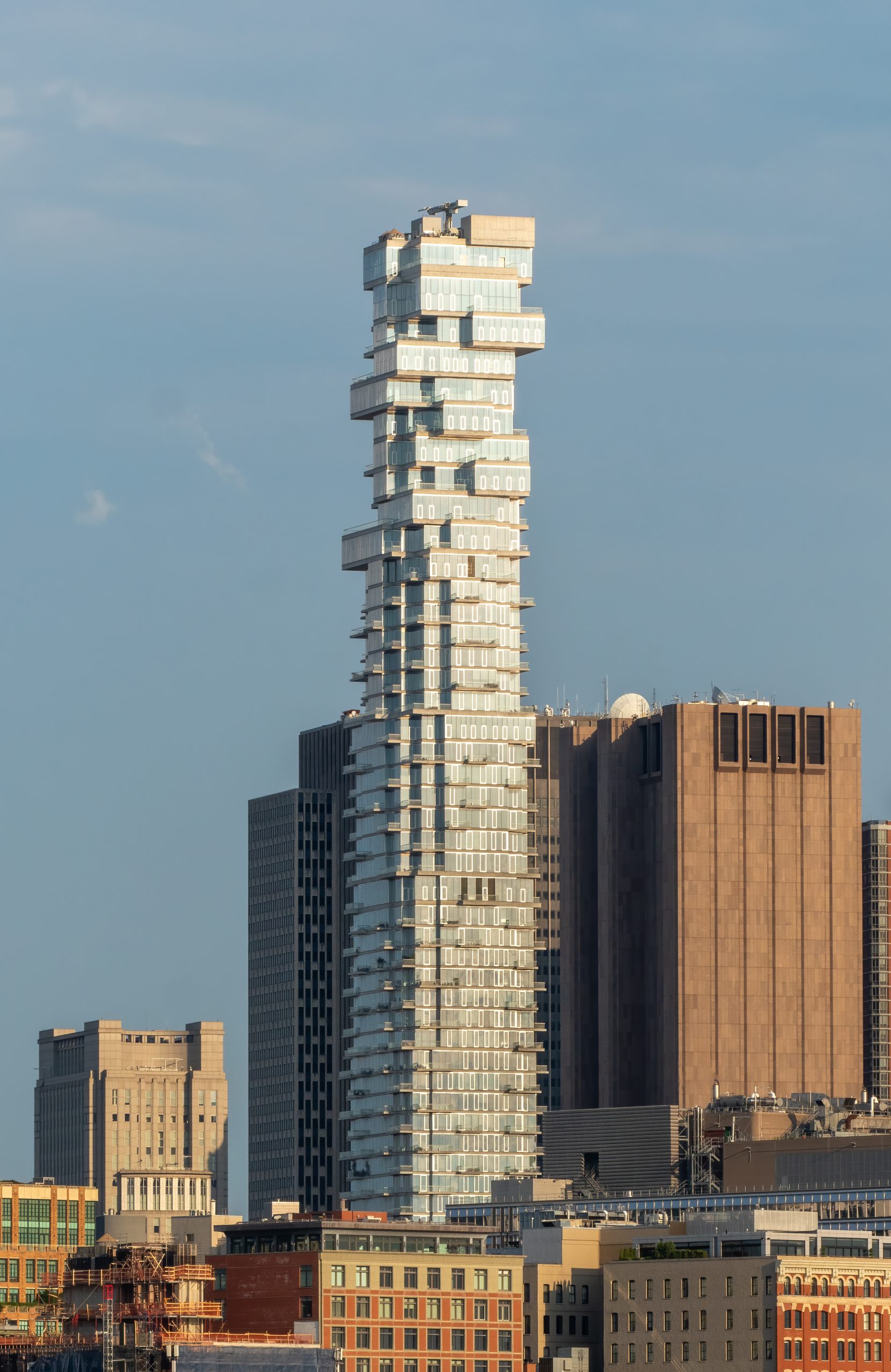 Rising 821 feet above TriBeCa, 56 Leonard Street captivates with its groundbreaking architecture, anchored by a striking 19-foot sculpture by world-renowned artist Anish Kapoor. This 57-story tower showcases a unique arrangement of individually cantilevered volumes, ensuring that no two apartments share the same layout or private terrace.